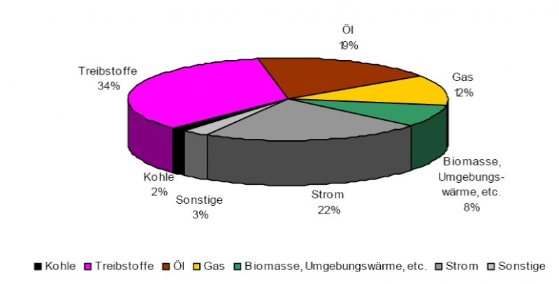 Betrachtet man den Endenergieverbrauch nach Wirtschaftssektoren so zeigen sich folgende Anteile: