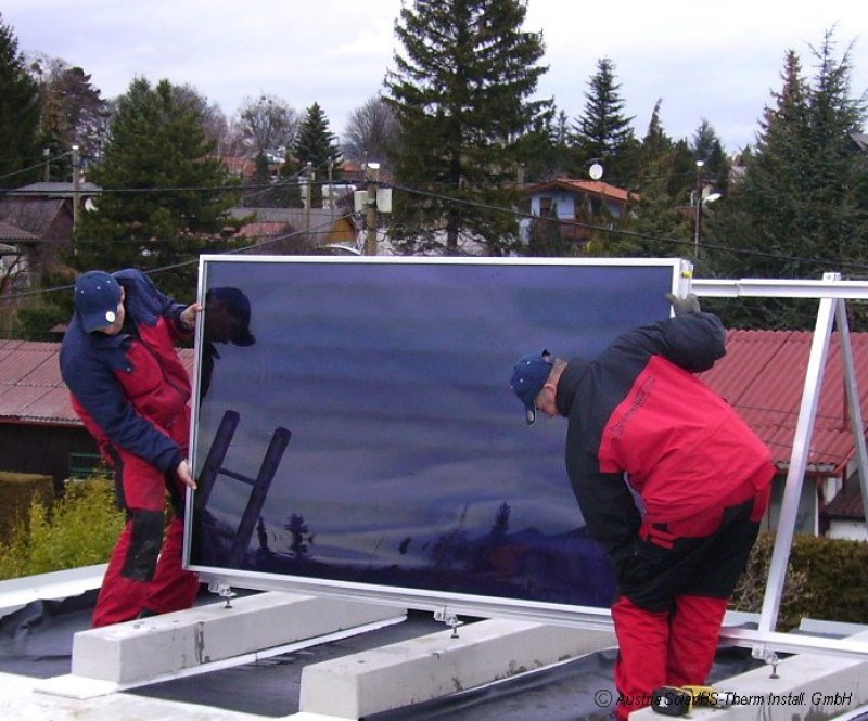 Im Sonnenkollektor werden die Sonnenstrahlen in Wärme umgewandelt und damit eine Wärmeträgerflüssigkeit erhitzt. Neben den weit verbreiteten Flachkollektoren sind auch Vakuumröhren-Kollektoren in Verwendung.