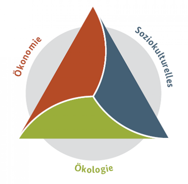 Eine nachhaltige zukunftsverträgliche Entwicklungspolitik – aufbauend auf den drei gleichwertigen Dimensionen der Nachhaltigkeit (vgl. Abbildung 1.01) – stellt den Ausgangspunkt für die Entwicklung von Prinzipien, Lösungsansätzen und Bewertungsgrundlagen für ein nachhaltiges Bauen dar. Das Leitbild einer solchen Entwicklungspolitik berücksichtigt gleichzeitig und gleichgewichtet ökologische, ökonomische und soziokulturelle Anforderungen und bezieht zukünftige Generationen in die Betrachtung verbindlich mit ein.